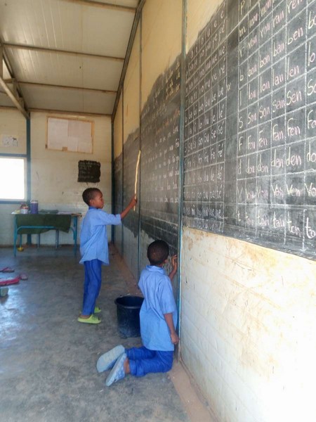 Puis dans les locaux de La maison des femmes où une salle de classe est toujours prête pour les enfants.