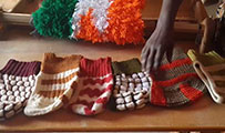 Elles tissent écharpes multicolores (4 en 8 mois vendues sur place 15 000F), des protections de sièges pour motos, (au moins 5 réalisées et vendues 7500F), pour voitures, des enveloppes de coussins....