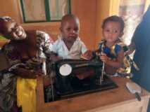Mené maintenant par 3 de nos anciennes élèves, elles reçoivent et forment à la demande des femmes qui désirent s'initier à la couture sur machine. Et, comme toujours, les enfants ne sont jamais loin....